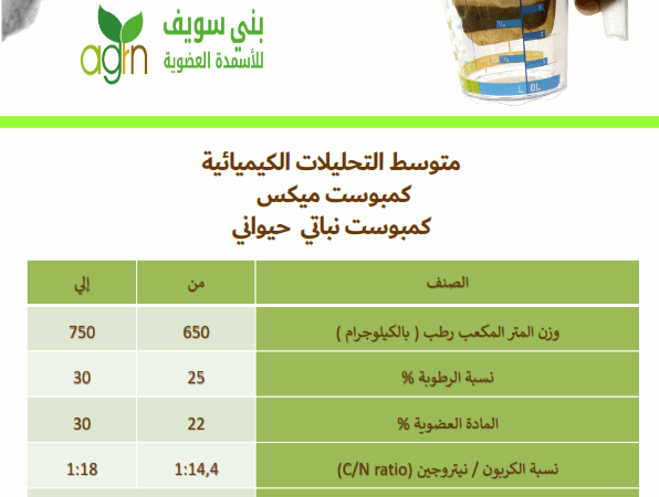 كمبوست نباتي حيواني ناتج من كمر المخلفات النباتية والحيواينة لمدة ثلاثة أشهر , لذلك يعمل على تحسين بناء الأراضى الرملية وتخصبها وتحسين صفات الأرض الطبيعية ويؤدى إلى زيادة الإحتفاظ بالماء و ترشيد إستخدام الاسمدة الكيماوية لما يحتوية من العناصر الكبري المغذية ( النيتروجين , الفسفور , البوتاسيوم ) و العناصر الصغري المغذية , كمبوست ميكس خالي من النيماتودا و بذور الحشائش و فطريات أعفان الجذور و دلائل البكتريا الممرضة .