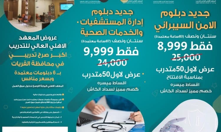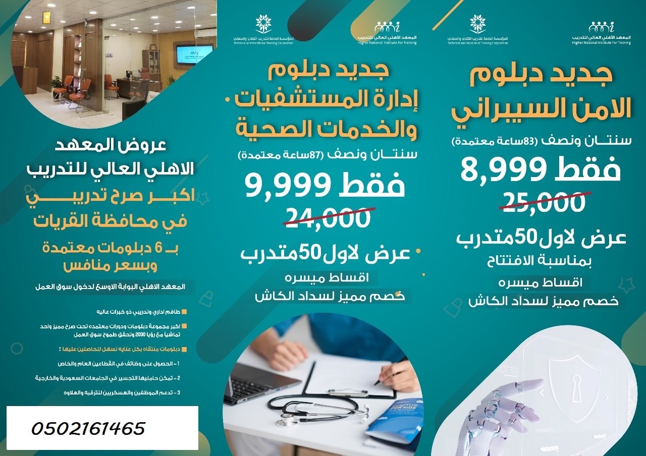 عروض📢 الدبلومات من المعهد الاهلي العالي للتدريب بالقريات بمناسبة اعتماد دبلومات جديدة بالمعهد