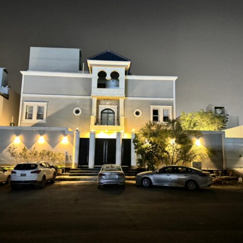 – المواصفات:- التكييف مركزي والسخان مركزي.- قبو يحتوي على غرفتين، وحمام، وصالة، وأحواض زراعية مفتوحة.- الدور الأرضي: مجلسي رجال مفتوحين على بعضهما، وصالة طعام، وغرفة نساء، وصالة واسعة مفتوحة على الدرج، وحمامين، وتيراس، وملحق خارجي مع حمام، وأحواض زراعة، وغرفة سائق وحمامها.- الدور الأول: جناح رئيسي ( غرفة نوم كبيرة، وغرفة ملابس، وحمام به جاكوزي)، وثلاث غرف نوم كل واحدة لها حمام مستقل، وصالة.- الدور الثاني أو السطح: شقة مستقلة لها مدخلها الخاص وهي عبارة عن جناحين ، الجناح الأول لسكن عائلة مكون من ثلاث غرف نوم (غرفتين في نفس السطح مع صالة كبيرة، ومطبخ، وحمام، وغرفة تقع في الدور الأول لها درج خاص من احدى الغرفتين، وبها حمامها الخاص) ، والجناح الثاني لسكنى الخادمة به غرفة للخادمة، وغرفة للغسيل، وحمام. بالاضافة إلى السطح.- المصعد مؤسس له.- طريقة العزل عبارة عن بلوك ٢٠ سم بالاضافة الى بلوك ١٥ سم وفي الوسط بينهما المادة العازلة ( الفلين بعرض ٥ سم) .
